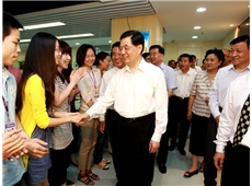 2011年8月11日,時(shí)任中共中央總書(shū)記胡錦濤視察華強集團時(shí)與員工親切握手。